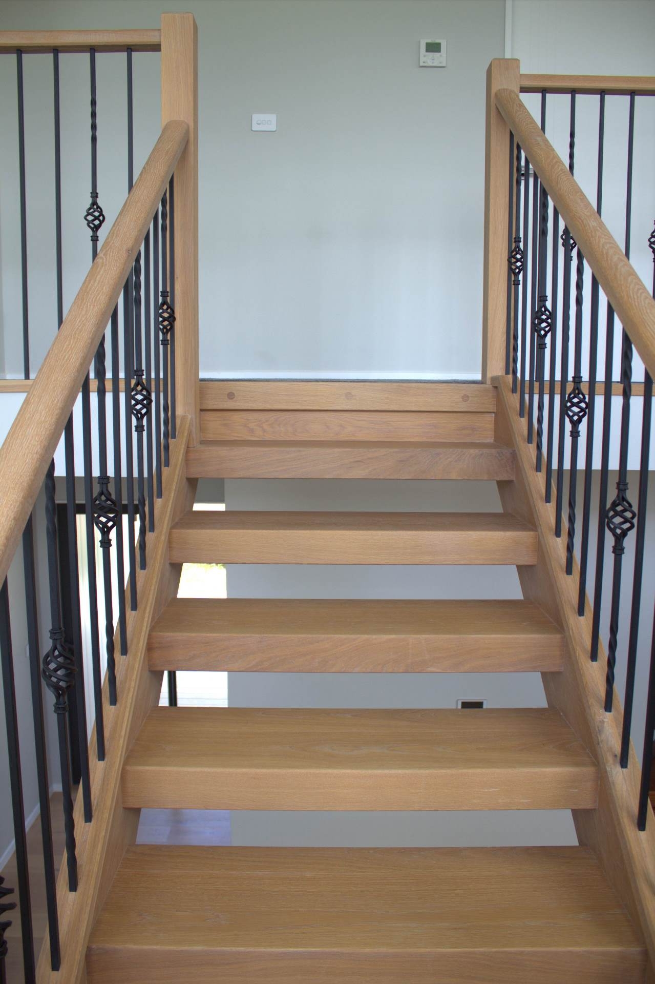 Solid wood stairs can be made from any timber you like. A lot of people think that you cannot buy kauri, rimu or matai any more, but that is not true, you can. We have made stairs that are identical to a 100 year old villa stairs with the balusters on the treads and the returned nosing’s with the carved brackets under them.